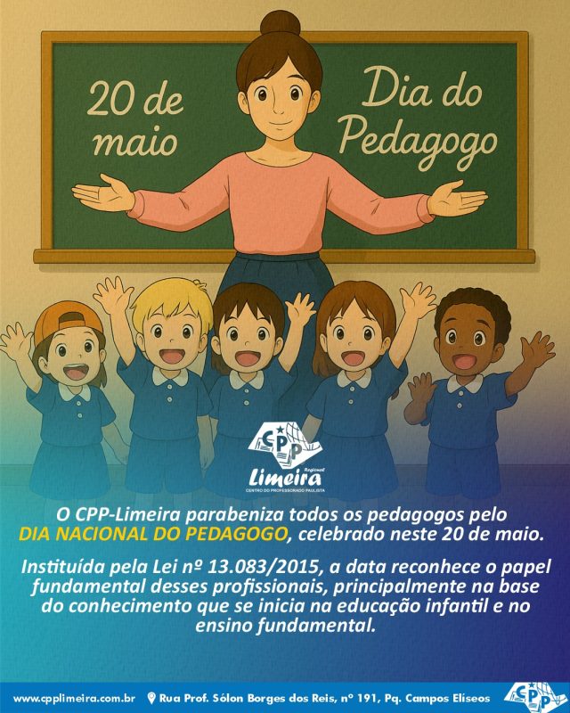O CPP-Limeira parabeniza todos os pedagogos pelo DIA NACIONAL DO PEDAGOGO, celebrado neste 20 de maio.