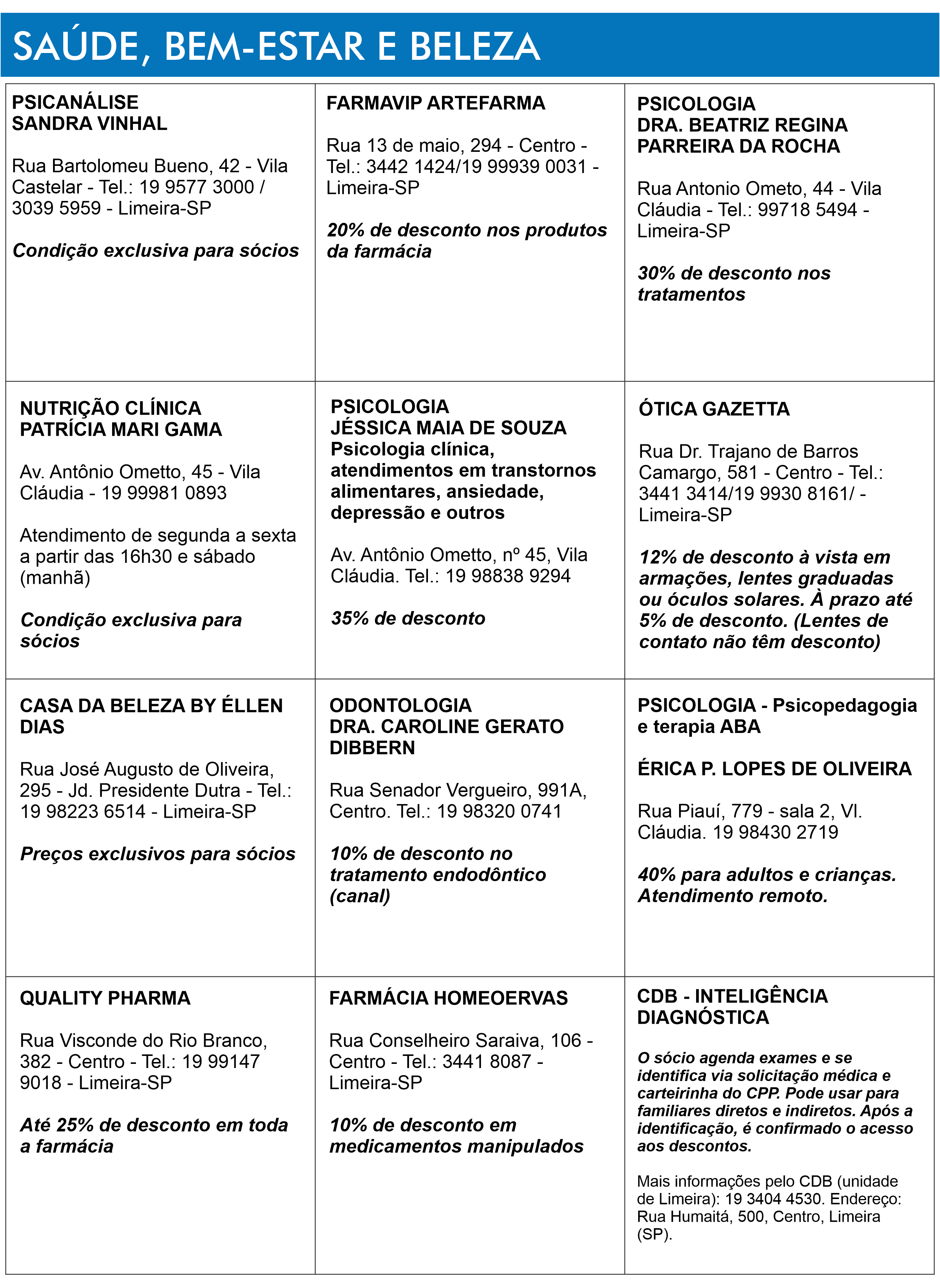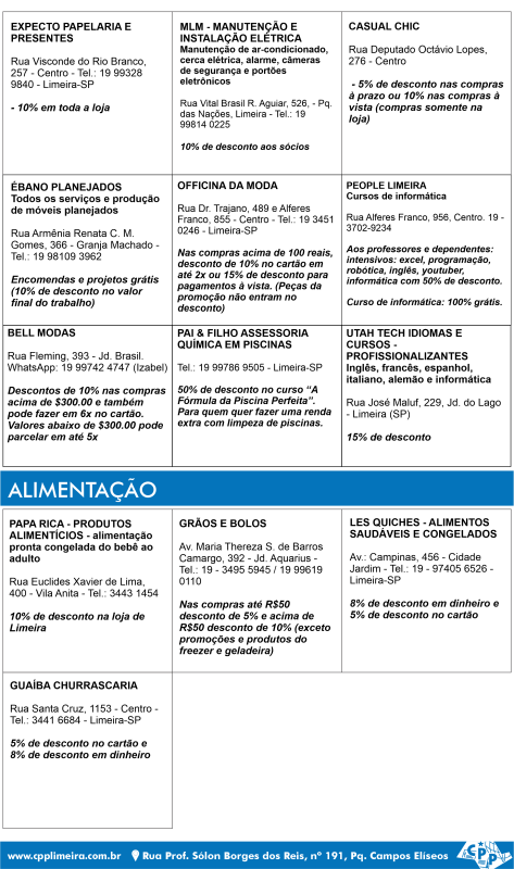 Comércios parceiros do CPP